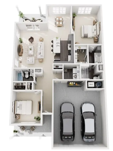 The Brookside features elevated finishes, a covered front porch, and a bright open layout for easy living and effortless entertaining while the zero-step, single-story design ensures daily comfort. This floor plan includes a covered front porch and covered rear patio— perfect for both entertaining and relaxing.