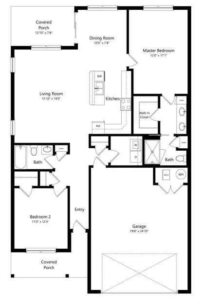 - Private 2-car attached garage and driveway, plus covered front porch and rear patio for direct home access
